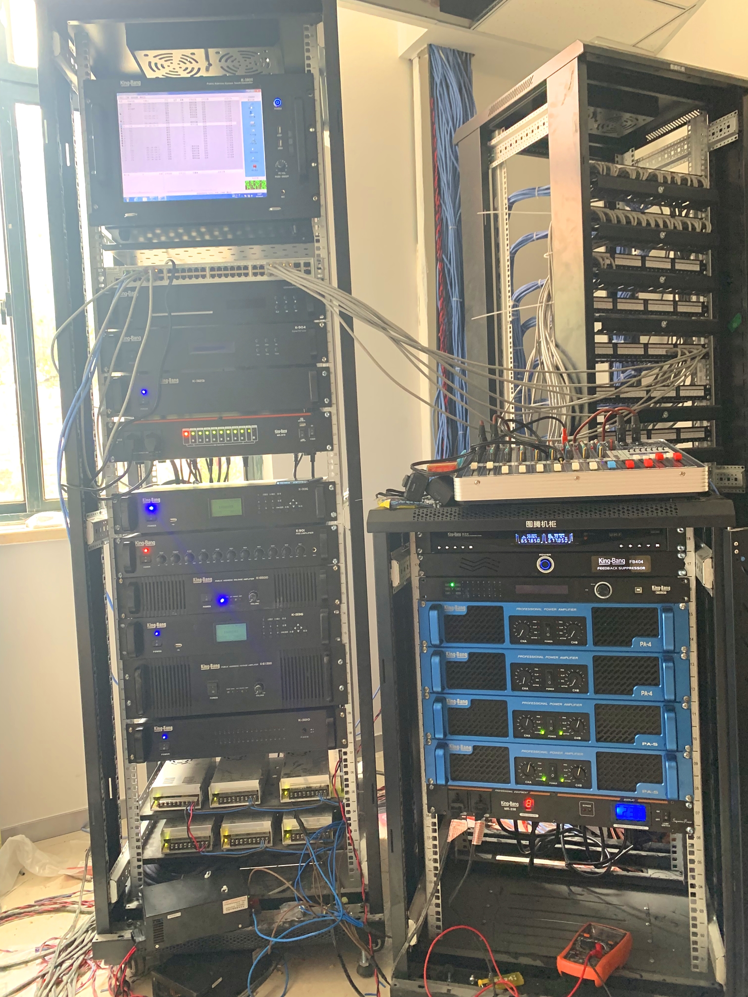 總服務(wù)器設(shè)備設(shè)于廣播控制室,在廣播室安裝系統(tǒng)的總主控設(shè)備、廣播呼叫設(shè)備、周邊設(shè)備等。廣播室的系統(tǒng)服務(wù)器是整個(gè)系統(tǒng)的總服務(wù)器,承擔(dān)整個(gè)系統(tǒng)的運(yùn)行通信,對(duì)整個(gè)系統(tǒng)進(jìn)行廣播尋呼控制,背景音樂(lè)播放控制,支持廣播系統(tǒng)數(shù)據(jù)和音頻的傳輸,支持系統(tǒng)定時(shí)播放、臨時(shí)插播、消防緊急廣播等系統(tǒng)服務(wù)器功能。