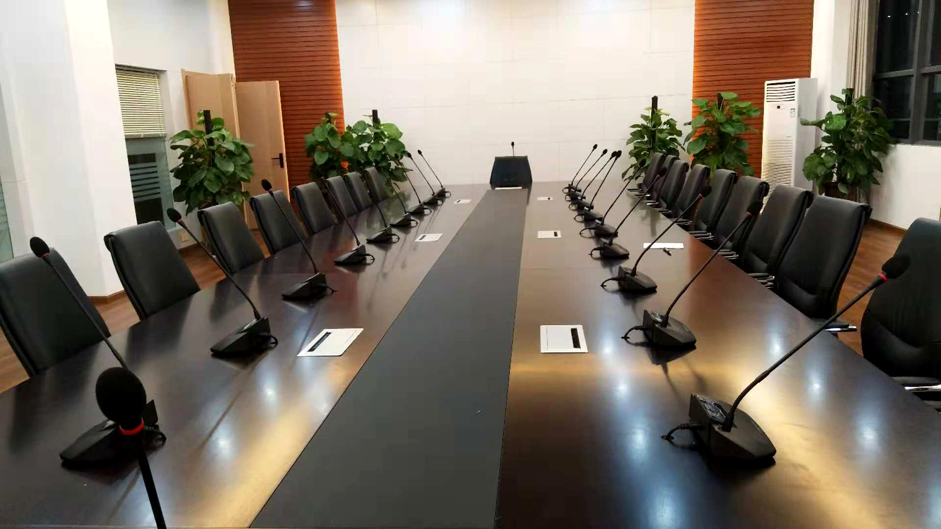 專業擴聲系統的喇叭采用一對一定阻傳輸方式,音箱與功放阻抗匹配,采用全頻寬頻音箱,為會議室還原出最佳的音質效果,保證音頻擴音系統易操作、功能靈活,滿足萬誠國際中心各種工作會議的不同功能要求。